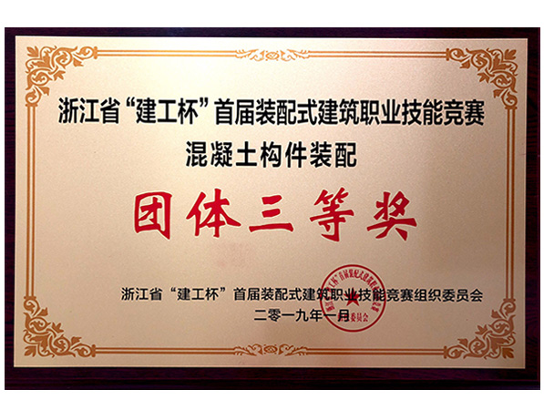 浙江省“建工杯”竞赛构件装配团体三等奖