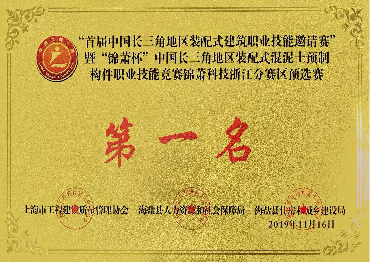太阳集团tyc4633杯中国长三角地区装配式混凝土预制构件职业技能竞赛浙江分赛区冠军