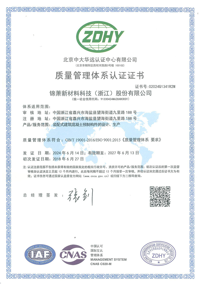 质量管理体系认证证书