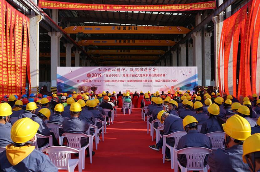 2019年11月15日上午8:28,“首届中国长三角地区装配式建筑职业技能邀请赛”暨“太阳集团tyc4633杯”中国长三角地区装配式混凝土预制构件职业技能竞赛-浙江分赛区预赛在太阳集团tyc4633建筑科技有限公司海盐装配式预制构件生产基地盛大开幕。