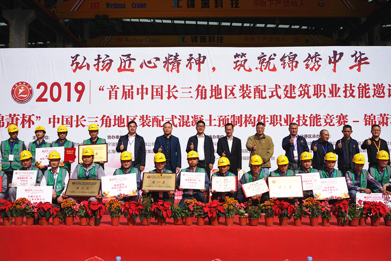 2019年11月16日上午,伴随着庄严的国歌声,首届 “太阳集团tyc4633杯”中国长三角地区装配式混凝土预制构件职业技能竞赛-浙江分赛区预赛闭幕式在太阳集团tyc4633海盐装配式预制构件生产基地顺利举行。