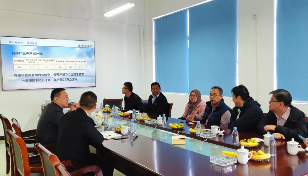 11月20日,马来西亚建筑工业发展局总经理Ahmad Farrin Mokhtar、MIDA驻华投资领事Steven Cheng、MIDA驻华投资处Anthony Wong、马来西亚构件厂建厂咨询顾问NG KOK PENG(黄国平)、马来西亚最大构件厂GAMUDA总经理Tan EK Khai等一行来到我公司海盐预制构件生产基地参观考察,公司董事长兼总经理李军、副总经理陈象热情接待了来自马来西亚的客人们。