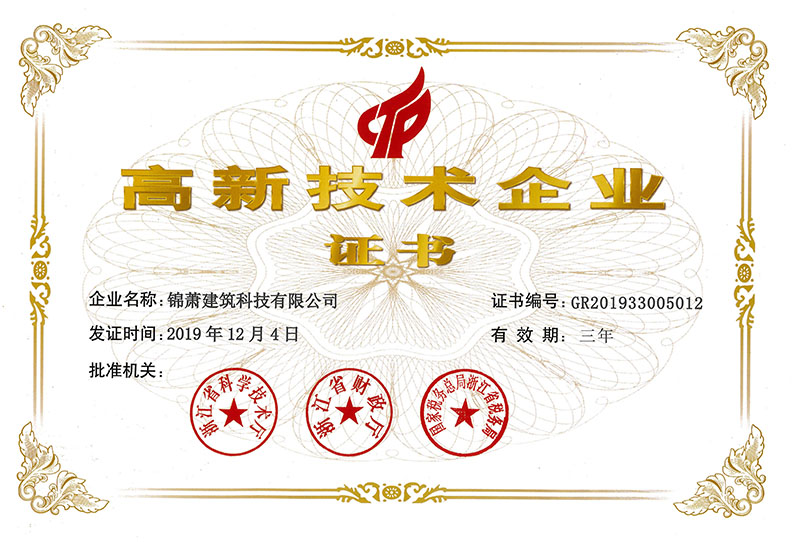 2019年12月,太阳集团tyc4633建筑科技有限公司成功通过高新技术企业认定,并于近日收到由浙江省科学技术厅、浙江省财政厅及国家税务总局浙江省税务局颁发的“高新技术企业”证书。