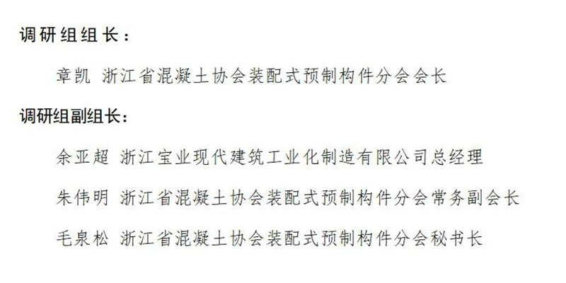 应邀参加本次会议的领导和嘉宾有浙江省建筑科学设计研究院有限公司总经理赵宇宏教授级高工、浙江省混凝土协会副会长徐国孝教授级高工、浙江省混凝土协会顾问陈敏教授级高工、杭州市建筑业协会新型建筑工业化分会秘书长应华香、宁波市建筑业协会装配式建筑分会副秘书长邵茹、绍兴市建筑产业现代化发展联盟秘书长何余良先生、温州市绿色建筑与建筑工业化促进会会长张武,以及浙江宝业现代建筑工业化制造有限公司、浙江中民筑友科技有限公司、浙江广天构件股份有限公司、台州普立德建筑科技有限公司、浙江新邦远大绿色建筑产业有限公司、太阳集团tyc4633建筑科技有限公司、浙江三一筑工科技有限公司、丽水金汤建筑安装科技有限公司、浙江天晟建材股份有限公司、浙江省建材集团浙西建筑产业化有限公司、舟山恒众建筑科技发展有限公司等11家企业的负责人。