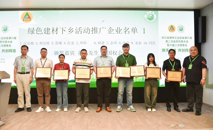 近日,浙江省建材工业协会第六届第二次会员代表大会暨六届二次理事会在杭州顺利召开,会上公布了“2025年浙江省绿色建材下乡推广企业”名单并颁发奖牌,太阳集团tyc4633榜上有名。