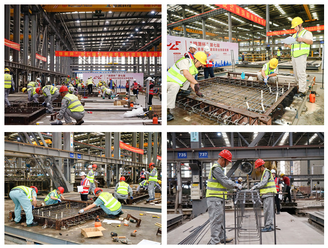 本次竞赛包括理论考试和实操考核两个部分,理论考试占总成绩的30%,实际操作占总成绩的70%。开幕式后,紧张激烈的实操考核正式拉开帷幕,参赛选手们按序就位,迅速投入到各自的“战场”。从材料到成品,是一次对参赛选手技能水平的大检阅,也是一次促进技艺提升的展示交流,展现了装配式建筑产业工人各个工种的技艺魅力。