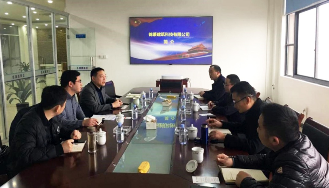 公司董事长李军向高海华县长一行讲述了企业目前的生产经营、发展规划以及人才培养等情况,感谢政府部门一直以来对于企业经营发展的支持。双方就公司成立技术中心、研发中心及产业工人培训等事宜进行了交流。高海华县长对公司的发展规模及前景予以肯定,并鼓励企业要抢抓当前发展机遇,吸引优秀人才,做大做强,促进当地就业及经济发展,促进建筑工业化产业升级。