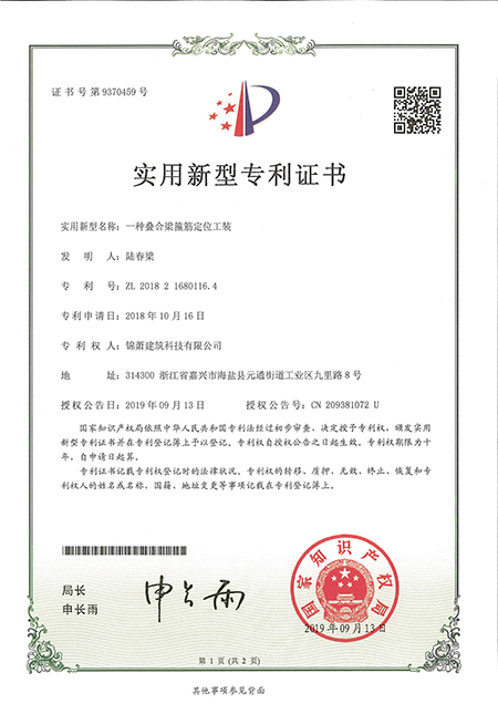 专利证书--一种叠合梁箍筋定位工装